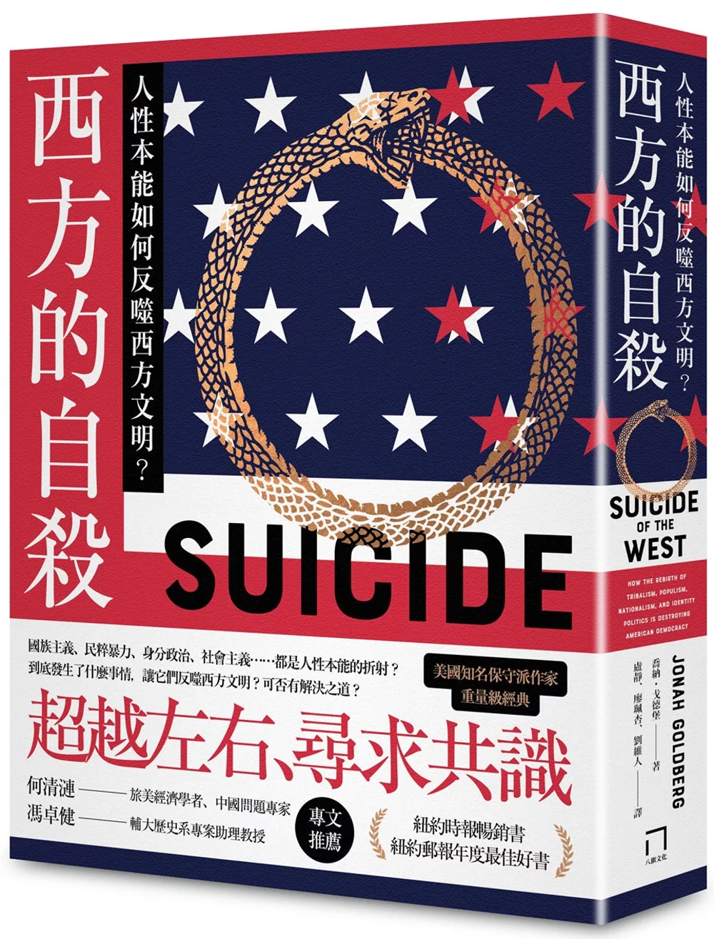 「沒有一本書比喬納.戈德堡這本《西方的自殺》更能解釋此刻美國所遭遇的危機。戈德堡用他招牌的邏輯和幽默,在深刻的研究、優美的文字和精彩的論證中解釋了自由民主和資本主義的『奇蹟』是如何成為西方繁榮的基本條件,也解釋了人們對制度的想當然爾是如何令一切迅速崩潰。在歷史與反詰的互相交織下,《西方的自殺》成為了一份振聾發聵的警醒,它告訴我們西方的成功既不是偶然的運氣,也不是必然的命運。它將會是今年最重要的一本書。」──史蒂夫.海耶斯(Steve Hayes),《旗幟週刊》(The Weekly Standard)總編暨福斯新聞撰稿人