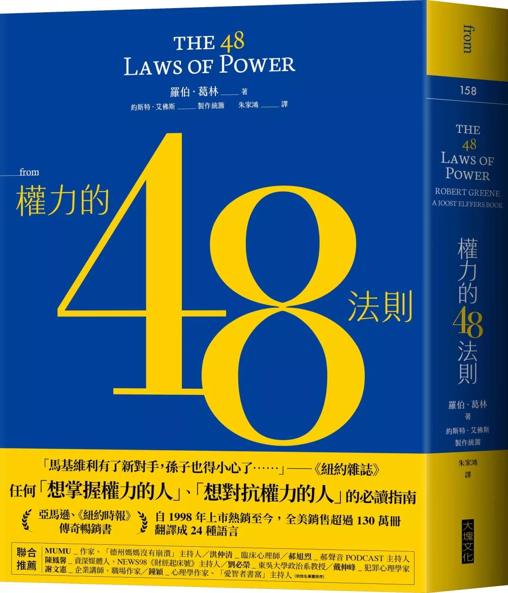 本書將三千年人類角逐權力的歷史濃縮為四十八條關鍵法則,不以道德為重、不以人情為本,卻又深入人性,極具啟發性。成書於一九九八年,是任何想要獲取、觀察或抵禦權力之人必讀的權力操作手冊。