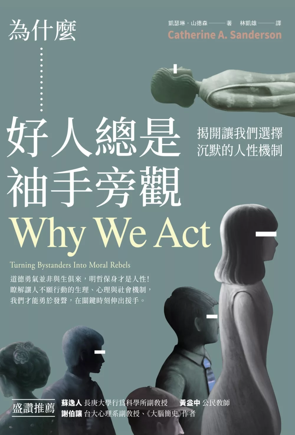 「《為什麼好人總是袖手旁觀》是探究人性與道德拉扯的精彩之作。作者以心理學與神經科學的文獻為基,揭示人們面對他人惡行或困境時,為何多保持沉默,僅少數挺身而出。本書也戮力觸及三個旁觀沉默充斥的領域—校園霸凌、大學不當性行為及職場惡行,提出務實的對應見解。對於當前屢見不鮮的道德爭議,本書具有重要的時代價值。」──蘇逸人,長庚大學行為科學所副教授