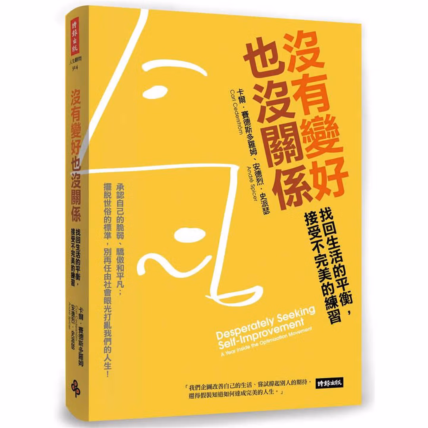 「我們企圖改善自己的生活、嘗試撐起別人的期待,還得假裝知道如何達成完美的人生。」這本書以作者兩人幽默的對話日記體寫成。它不是在教我們如何變得更完美,而是誠實面對改變過程中所帶來的挫敗和矛盾,認清自己可以控制的部分。