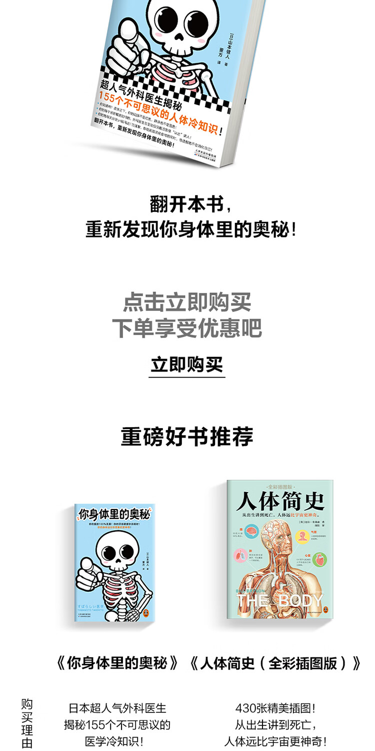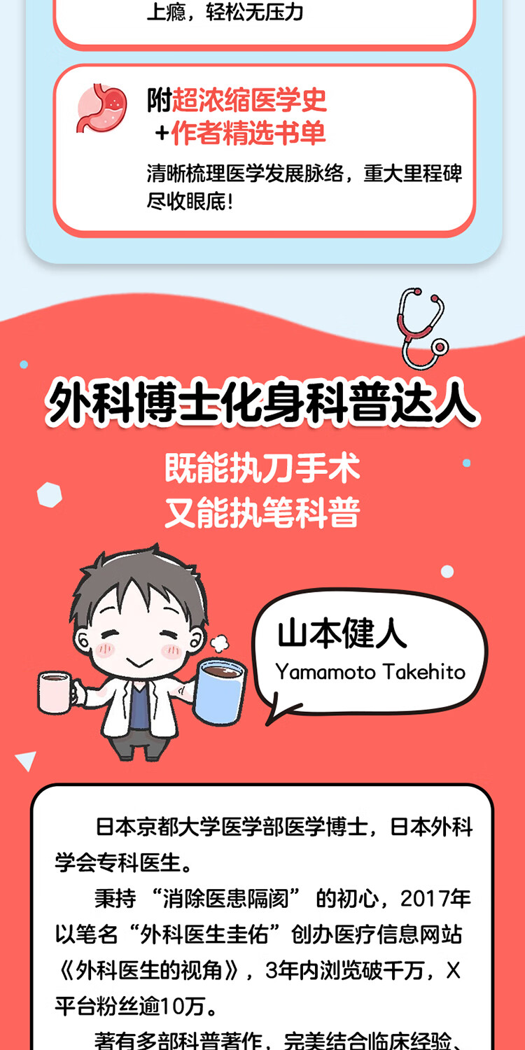 书后附超浓缩医学史,清晰梳理医学发展脉络,重大里程碑尽收眼底!如果意犹未尽,还有作者精选的推荐阅读书单,即刻开启你的人体探索之旅!